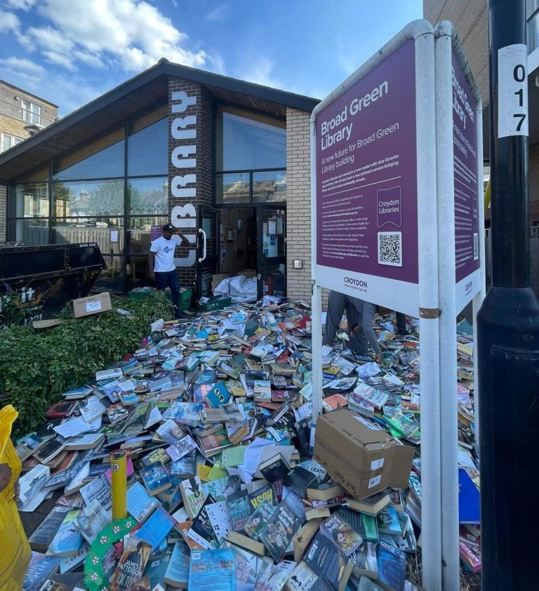 Marín, A. (2025). Booked! Mayor Perry deceives over destruction of library stock. Inside Croydon. Cobertura de cómo la administración de Perry permitió que contratistas tiraran libros a la calle y la reacción pública ante el incidente. https://insidecroydon.com/2025/08/10/booked-mayor-perry-deceives-over-destruction-of-library-stock/ Se describe un episodio escandaloso en el que cientos de libros de la biblioteca pública de Broad Green…