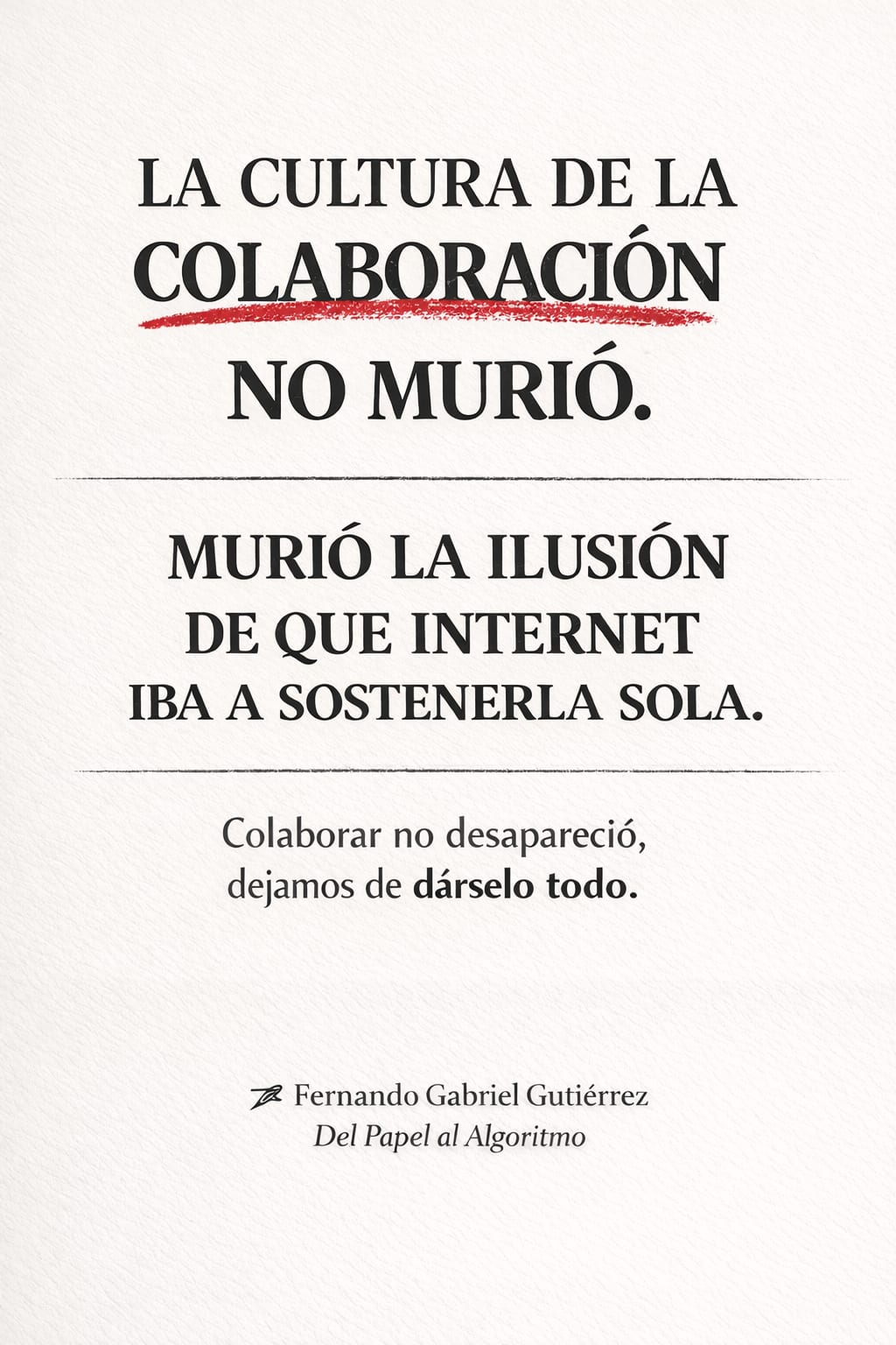 sino una de las últimas infraestructuras éticas donde la colaboración todavía importa.
