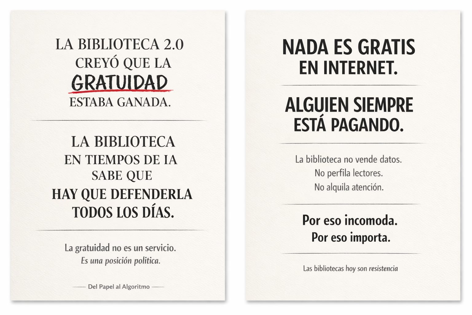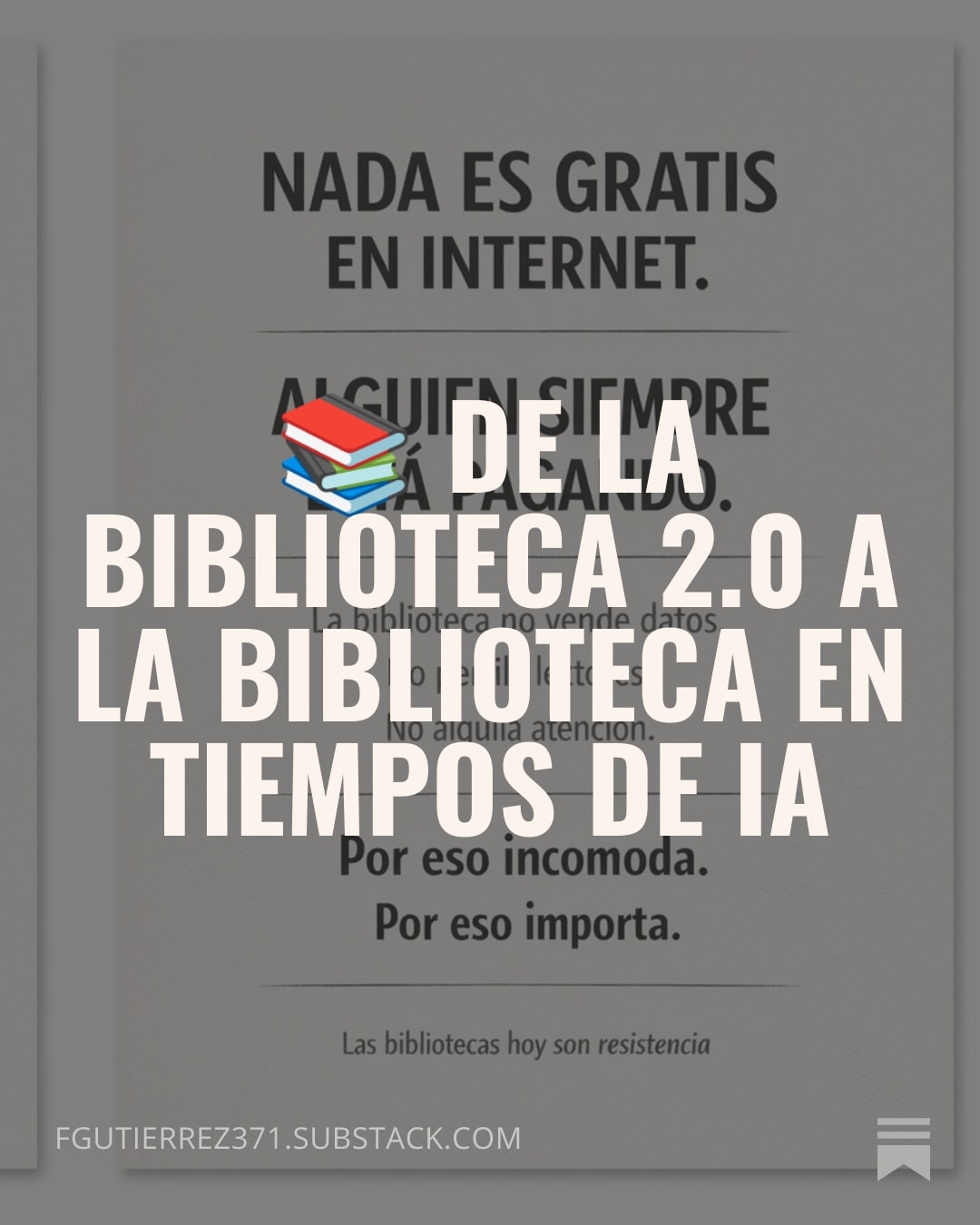 La biblioteca en tiempos de inteligencia artificial y algoritmos nace, en cambio, en un escenario distinto: concentración, automatización, opacidad y mercado.