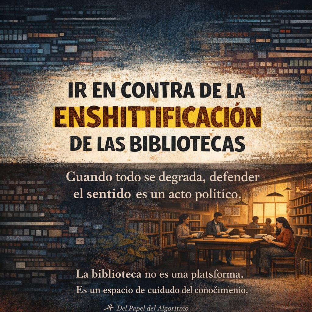 Mientras las plataformas optimizan para captar atención, la biblioteca debe optimizar para comprensión, contexto y autonomía.