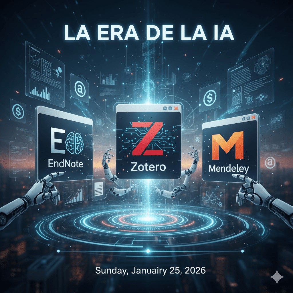 Se destaca que la gestión de referencias ha sido tradicionalmente percibida como una tarea tediosa; sin embargo, herramientas como EndNote, Zotero y Mendeley revolucionaron por completo este proceso, automatizando labores que antes eran manuales y laboriosas. En la actualidad, la evolución de estos gestores apunta hacia una nueva era impulsada por la inteligencia artificial (IA), en la que los flujos de trabajo se volverán más inteligentes, integrados y capaces de asistir al investigador de manera proactiva en todas las fases de su trabajo académico.