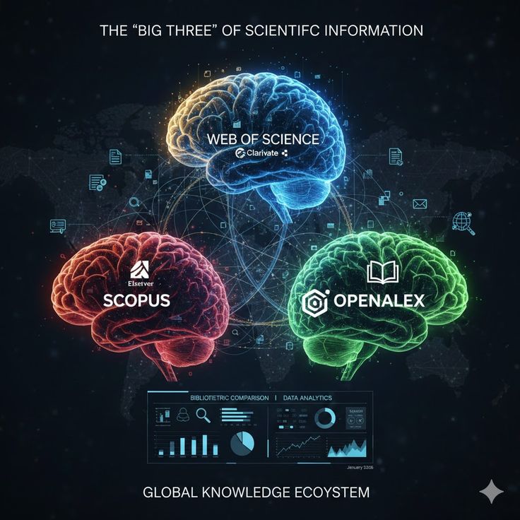 Torres-Salinas, Daniel & Arroyo-Machado, Wenceslao (2026). The ‘Big Three’ of Scientific Information: A Comparative Bibliometric Review of Web of Science, Scopus, and OpenAlex (preprint). arXiv:2601.21908. doi:10.48550/arXiv.2601.21908. https://arxiv.org/abs/2601.21908 Se ofrece un análisis comparativo exhaustivo de las tres principales bases de datos bibliográficas multidisciplinares utilizadas globalmente para la evaluación de la investigación científica: Web of Science Core…