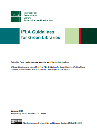 Hauke, Petra, Antonia Mocatta y Priscilla Nga Ian Pun. IFLA Guidelines for Green Libraries. The Hague: International Federation of Library Associations and Institutions (IFLA) 2026 Texto completo IFLA Guidelines for Green Libraries constituyen un marco integral y sistemático para el desarrollo, la gestión y la evaluación de bibliotecas verdes y sostenibles en contextos muy diversos,…